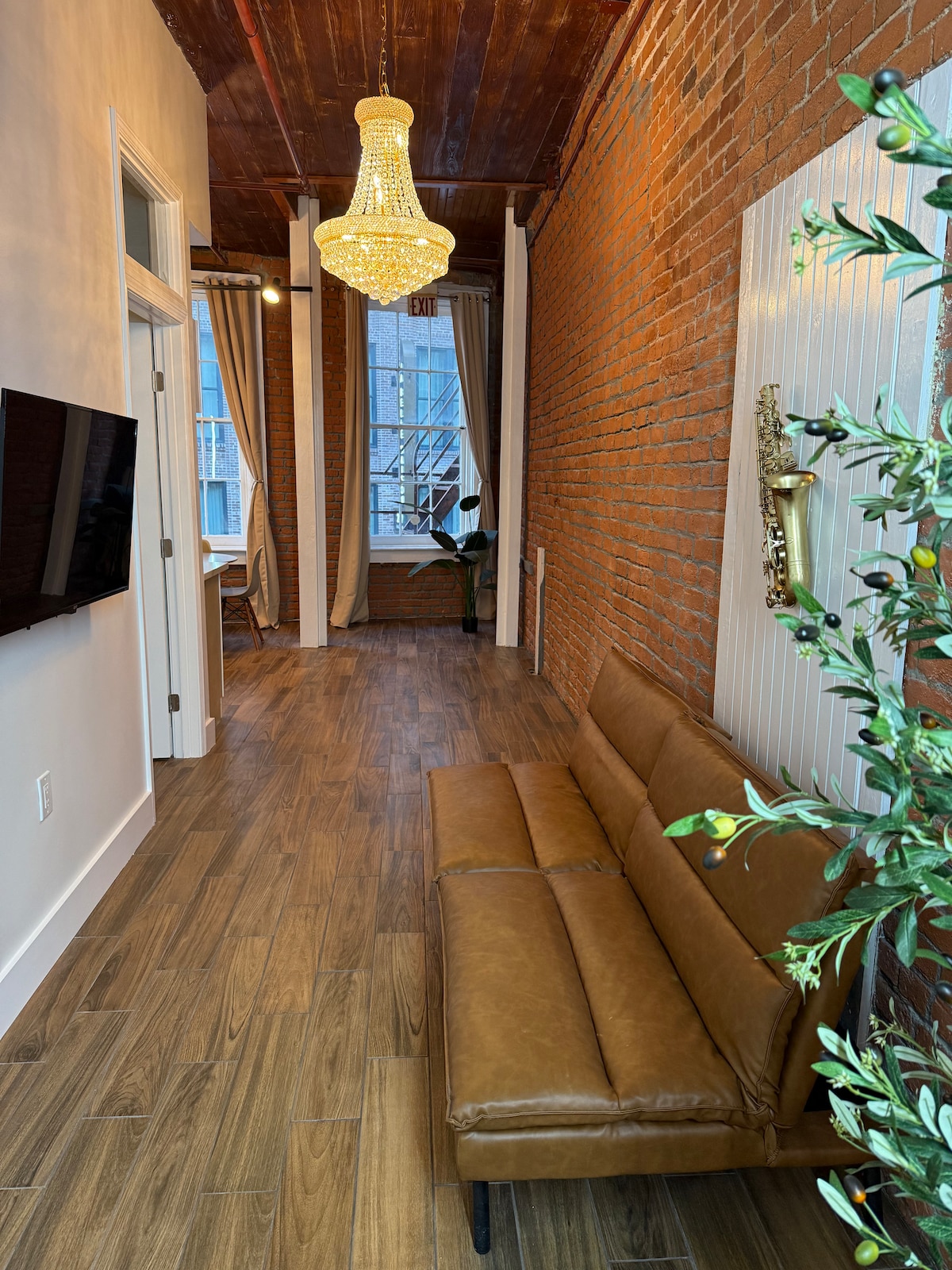 ⭑ Welcome to The Black & Gold ⭑ This stylish two-bedroom, two-bathroom suite features exposed brick, original wooden beams, and a spacious private outdoor area—blending New Orleans charm with upscale comfort. Perfect for couples, friends, or small groups, The Armstrong includes a fully equipped kitchen, indoor dining for six, and a bright living area in the heart of the Warehouse District. Just steps from the French Quarter, it’s your perfect base to explore the city.