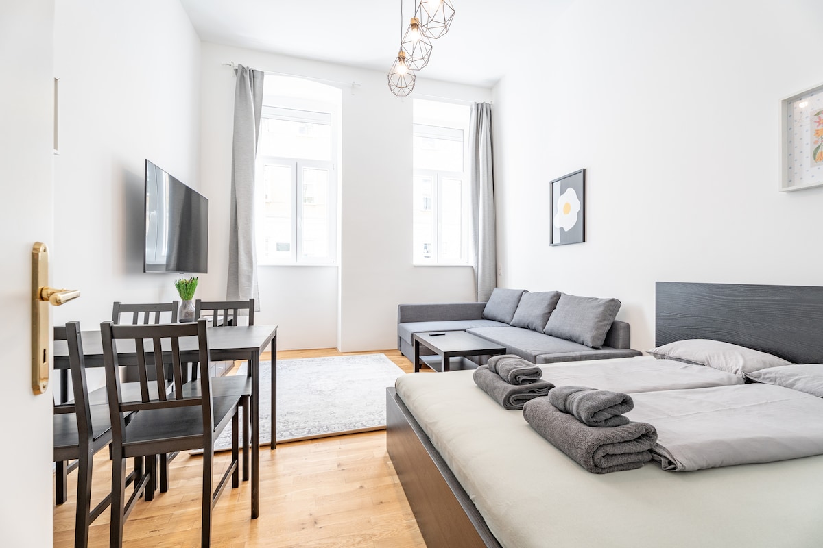 Step into the comfort of your stylish, sun-soaked rooftop apartment, with outstanding facilities in central Vienna. Just a few steps away from the vibrant Radetzkyplatz & Danube River, the apartment promises an urban retreat, walking distance to the city's best restaurants, stores, attractions & landmarks. Authentic Vienna living at its best! ✔ King Bed + Sofa Bed ✔ Open-Plan Living Area ✔ Fully Equipped Kitchen ✔ Private Balcony ✔ Smart TV ✔ High-Speed Wi-Fi ✔ Air Conditioning Read more ↓