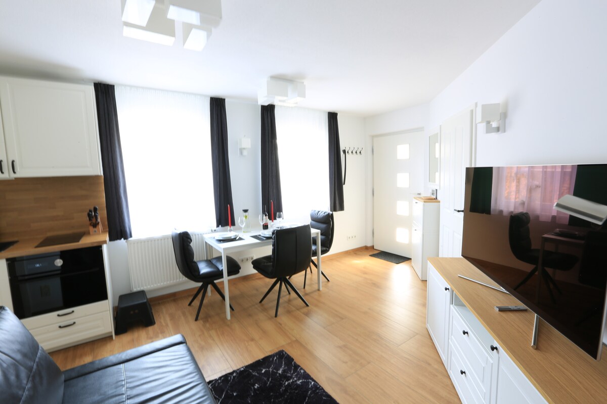 Knapp 45qm Maisonette Dachwohnung, mit allen was für eine kleine Stadtwohnung wichtig ist. Wohnbereich mit Couch, TV sowie Internet. Neuwertige Küche mit Herd, Ofen, Spülmaschine, Kaffeemaschine und Kühlschrank. Über eine Treppe gelangt man in den oberen Bereich der Wohnung mit Bad und Schlafzimmer. Kleines Tageslichtbad mit Wanne. Integrierte Glaswand lässt ein unkompliziertes Duschen zu. Schlafzimmer mit 1,60 Doppelbett. Begehbarer Kleiderschrank. Angenehmer Eichenholzboden
