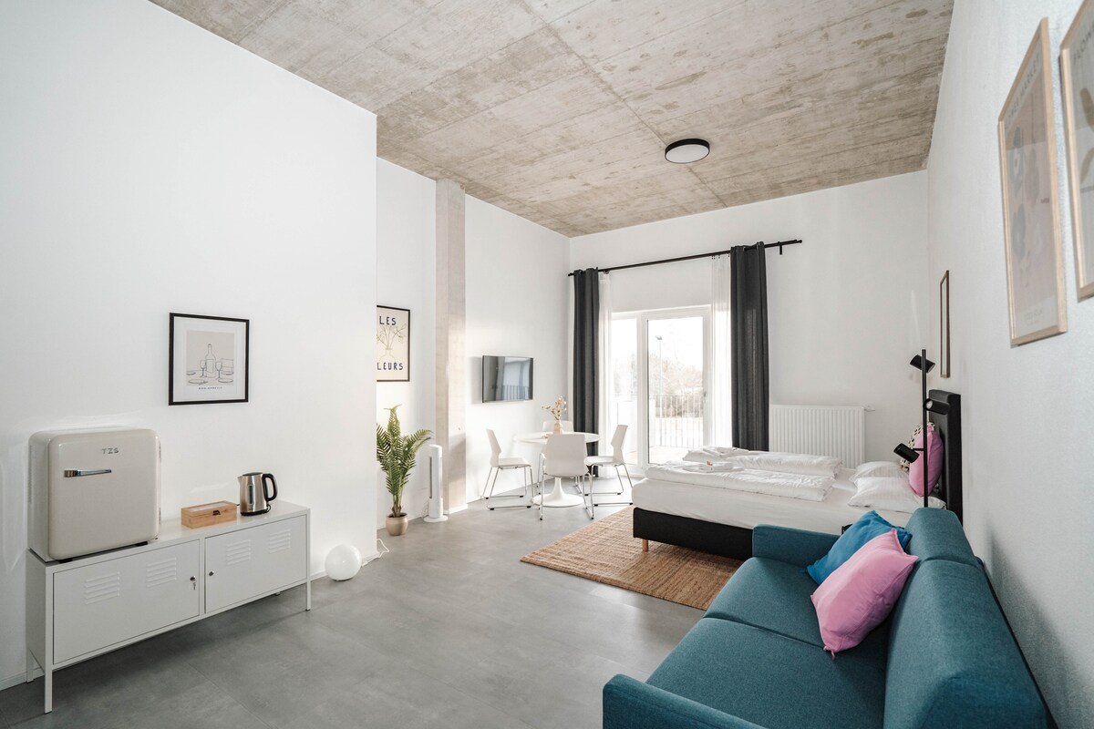 时尚单间公寓,配备阳台和沙发床