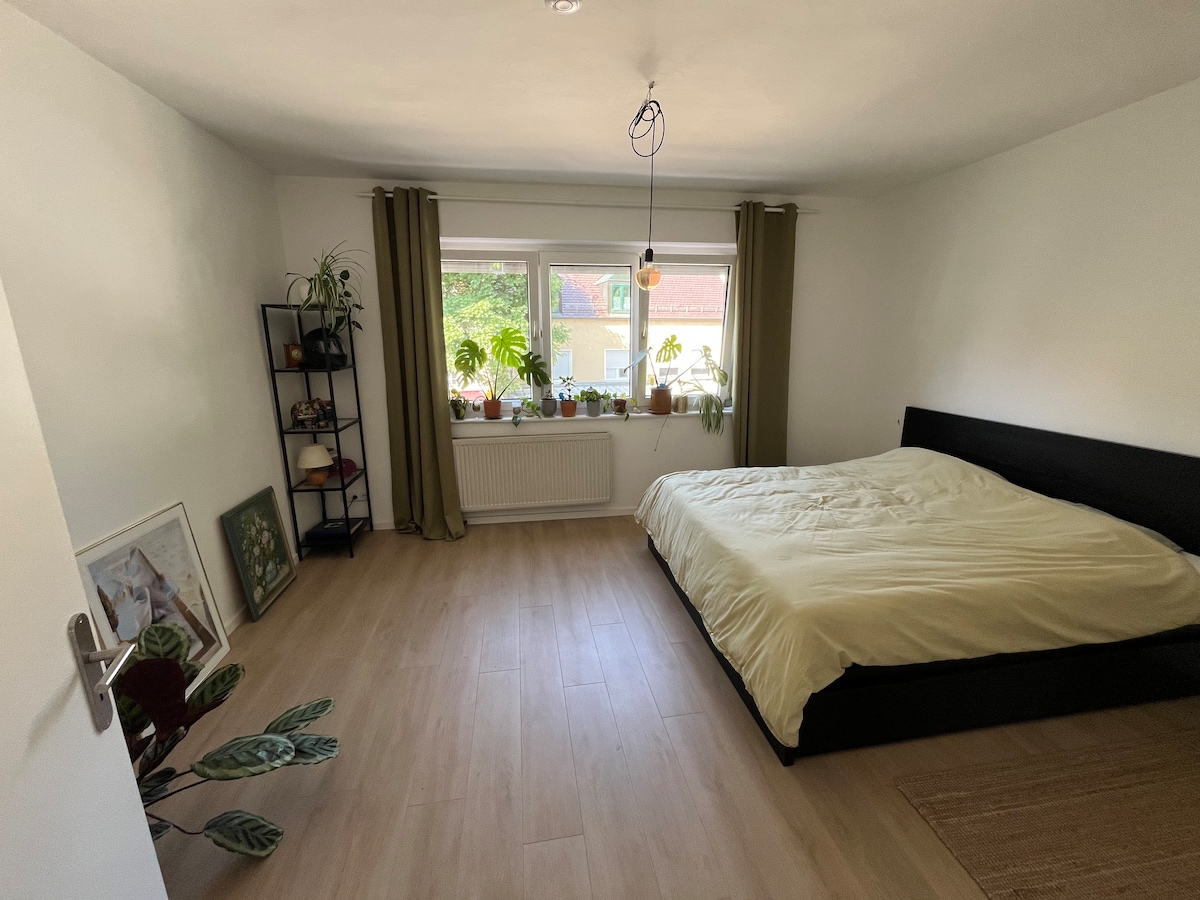 Top location: only a 35 min. train ride to Munich's center and only a 5 min. walk to the train station, grocery store, bakery café, premium gym, multiple dining options within 3 mins. walk, 15 min. walk to the historic Augsburg city center & 10 mins. to nearby forest & parks Apartment: 1 bedroom, 1 office with spacious desk & guest couch (photos to come), 1 fitness- & dressing room, modern kitchen incl. all appliances, bathroom incl. washing machine & dryer, bike for use, garage for car