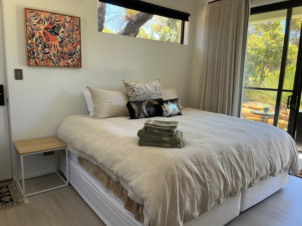 Relax and enjoy nature at this warm & cosy retreat settled right in the heart of one of Margaret River's magnificent Marri & Karri forests. Only a short walk to the river/town/cafes/restaurants and only a short drive to some of Margaret River's famous wineries and beaches. Enjoy Margaret River town centre which is approx 10 minutes walk! Or take a short couple of minutes stroll to the river for a swim/ walk trails meander along both sides of the river through magnificent Karri & Marri Forest.