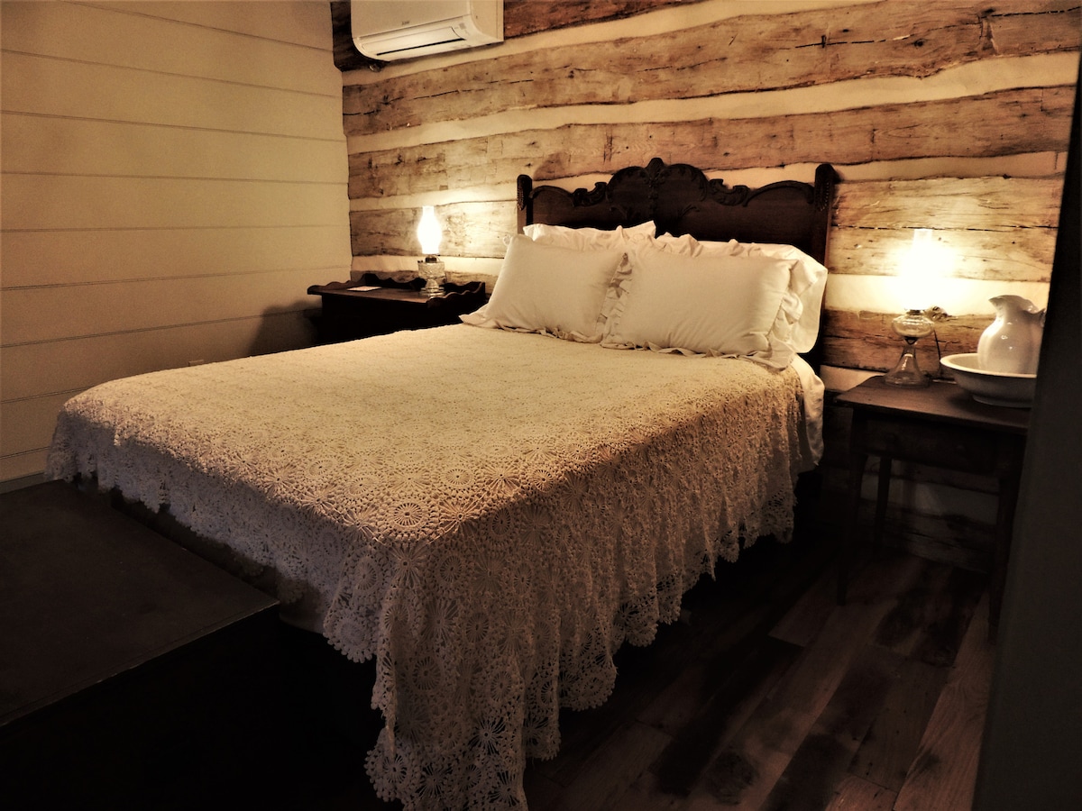 You won’t want to leave this charming, one-of-a-kind bed & breakfast. The log house features a timber beam living/dining room with stone fireplace, a separate library/game room, front porch and back patio. Each bedroom includes a queen-size bed with fine linens and comforter, robe, closet and chair. Your private bath includes spa-like towels, organic toiletries, and hairdryer. The house is air-conditioned and includes wi-fi. A delicious multi-course breakfast is prepared for guests each morning.