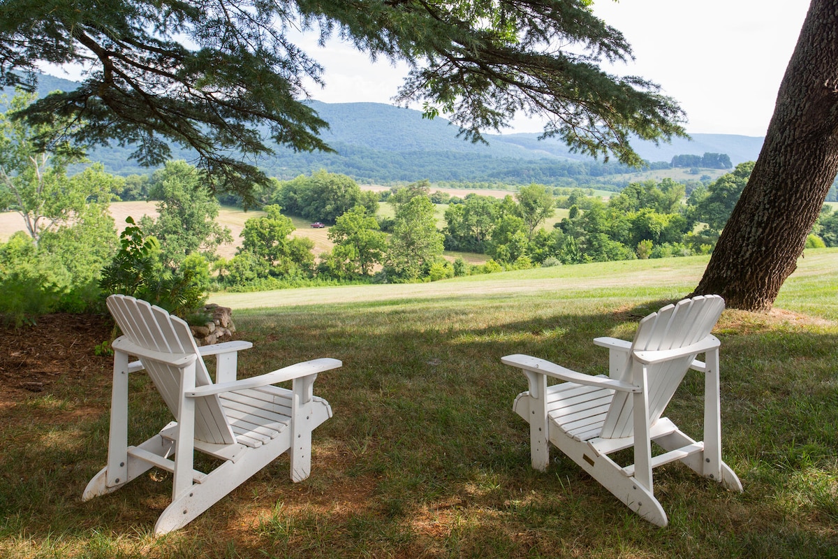 The studio is in a working 1890’s German bank barn with horses, chickens and a rescue dog. The farm sits 7 1/2 miles from the charming town of Staunton. There are no other visible houses. In the spring, fireflies are as amazing as the night sky on a clear night. I try not to add to light pollution and try to be green and organic. Studio not good for children. Read further about mobility concerns. From 11-17-21 through 12-30-21 please only book two weekend night stays.