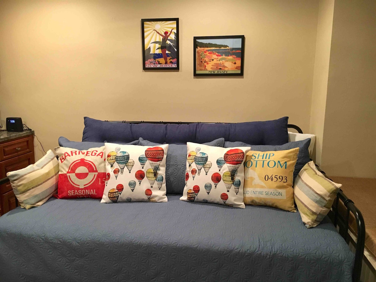 Small, sweet & comfortable studio. Full size memory foam daybed. Kitchenette area includes: apt size freezer/fridge, microwave, electric kettle, skillet, Keurig coffee maker, air fryer, dishes (place setting for 4). Flat-screen TV on wall opposite bed. Beautifully redone bathroom w/ rainfall shower. Historic building w/ great ambience, only a block from beach/boardwalk. Closet w/ dresser inside & storage under window seat. A/C & ceiling fan.