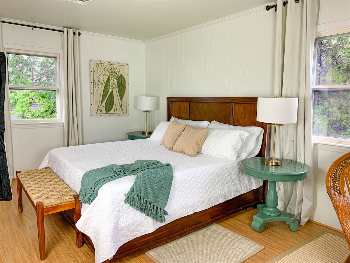 The only female veteran owned boutique hotel of the Carolinas. Featured by Southern Living, Travel + Leisure and Our State Magazines. Named Best Hotel in the 2024 + 2025 Best of the Pamlico contest. Located half a mile from the historic downtown + waterfront. You'll enjoy a peaceful setting + easy access to Washington's attractions. The room features a queen size bed, private bathroom, remote work space + high-speed wifi. Parking available on site. Complimentary bikes + childrens playroom.