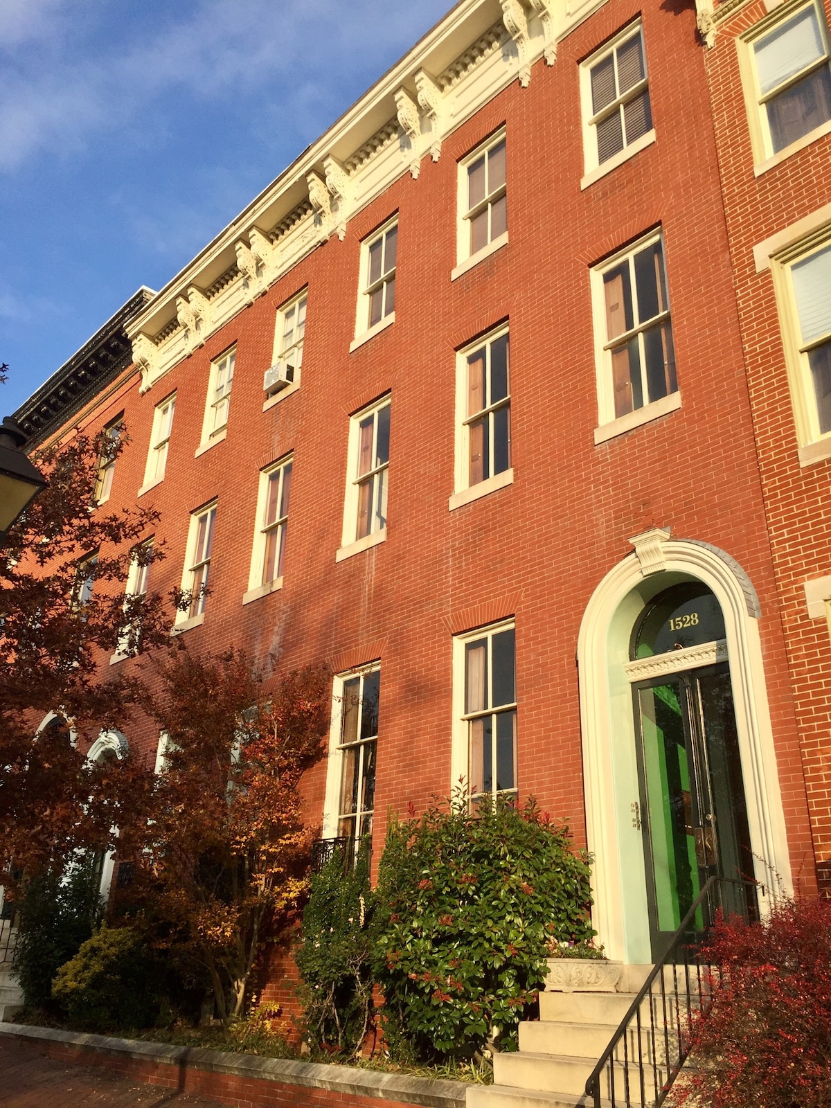 The south-facing, 2nd floor 1-bedroom apartment of an owner-occupied historic townhouse overlooks historic Union Square Park in Baltimore City. Located 2 doors from the author, H.L. Mencken's home place, the neighborhood is primarily residential , but very convenient to the Inner Harbor. The apartment has a full kitchen (with light breakfast items), historic details & eclectic furnishings. Street parking is easy. The space is good for couples and solo adventurers, and business travelers.