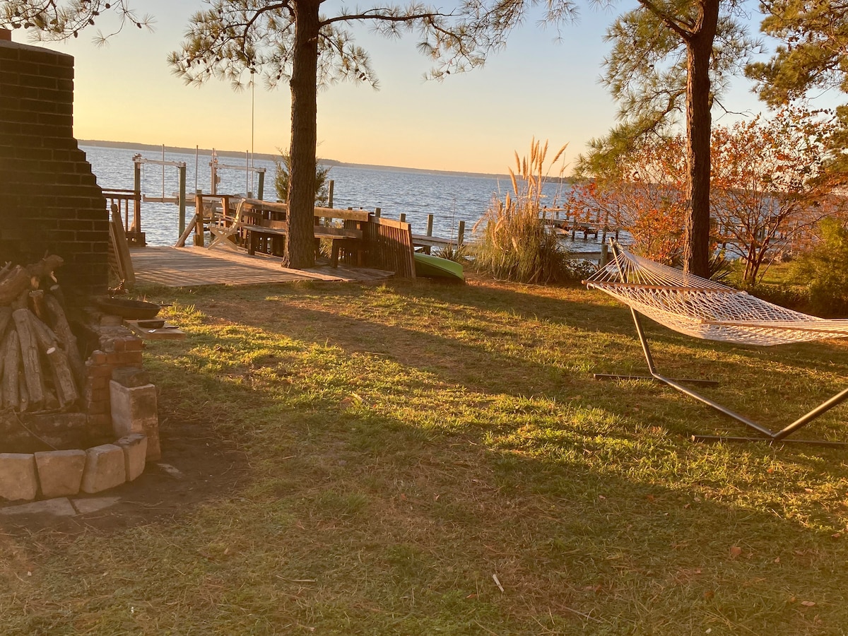 A lovely waterfront cottage with stunning bay views and the best sunsets on the East Coast. Sliding glass doors create the feeling of being right on the water, even when indoors. You can crab, fish, kayak, grill, and swim directly from the backyard. It's incredibly peaceful and relaxing. Just a mile away is a newly renovated island restaurant with a bar and a wide variety of food options. The house was passed down from my father, and all proceeds from Airbnb go towards making improvements.