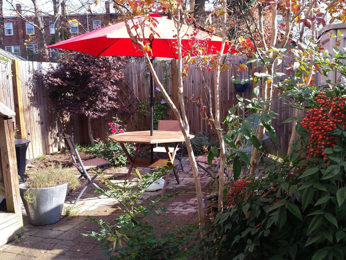 Park your car in a free off-street parking spot and walk or take the metro from this charming English basement with plenty of natural light. Stylishly simple, classic design is enhanced by exposed brickwork, and homey touches. Automatic booking is limited to 30 days, but feel free to contact us about booking a longer stay. Guests have their own private one bedroom with a full bath, living area and kitchenette. Free off street parking is available for small and medium sized cars. You will have complete privacy and use of the suite which is in our sunny basement. You will have your own entrance accessible by touchpad. We provide each reservation with a unique key code to unlock the door and control the alarm. We are available if you need us, but otherwise you probably won't see us. The home is in a residential neighborhood on the eastern side of Capitol Hill, a 30-minute walk from the Capitol and a short 10 minute walk to the metro, buses, bike share, and Zipcars. Buy food and flowers at the historic Eastern Market, or dine out at Barracks Row. You can reach the Capitol by foot (30 minutes) or Uber (under 10 minutes), but many visitors use the subway system, called the Metro. The Stadium Armory metro stop is about six blocks away (less than 10 minutes walk) and is on the blue/orange/silver line which takes you directly to the Capitol (Capitol South stop), Museums (Smithsonian stop) and the White House (Metro Centers stop). Of course the Metro will also take you to virtually any other location you hope to visit. There is also a bus stop one block away where you can catch the bus to the historic Union Station located right next to the U.S. Capitol. From Union Station you can walk to the Mall, get the metro, even take a train to your next Amtrak destination. Some guests use the "Circulator" bus which runs a loop around the Mall. You can buy a daily pass at Union Station to hop on and off the Circulator throughout the day. We we also have a bike share and zip car spot within a few blocks. Check-in is at 4, but we accommodate earlier check or luggage drop off whenever possible.