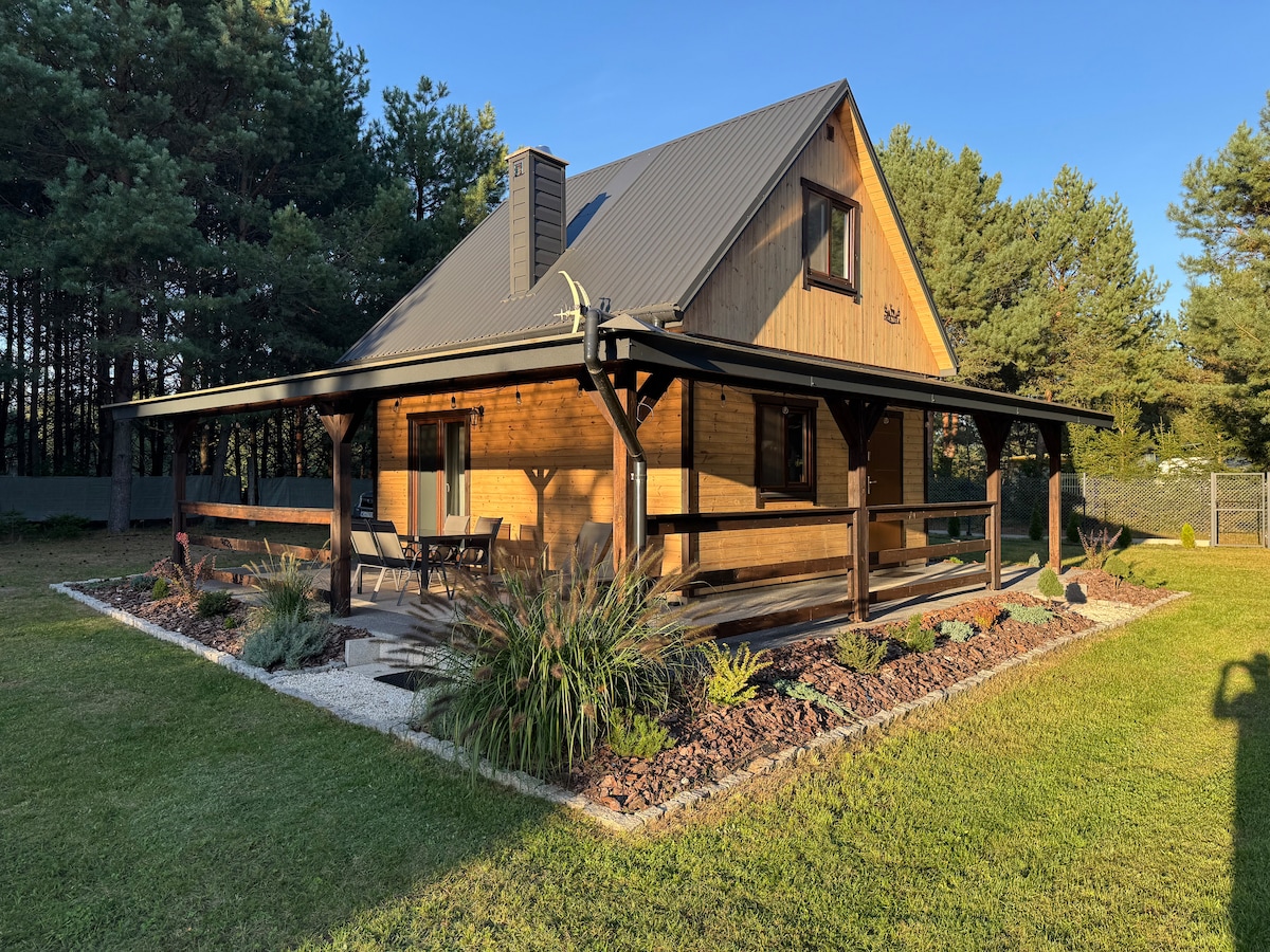 The cozy wooden house in the northern east of Poland is the ideal place to get fresh energy. The large garden with a free beautiful view on the lake Blizno, its own access to the lake and pier is great for relaxing, having a barbecue, swimming. .The house has an open kitchen. You can eat with up to 8 persons on the veranda, enjoy the great view of the lake. The spot is great for any trips into nature, to the woods or surroundings, by foot, bike or boat / kayak.