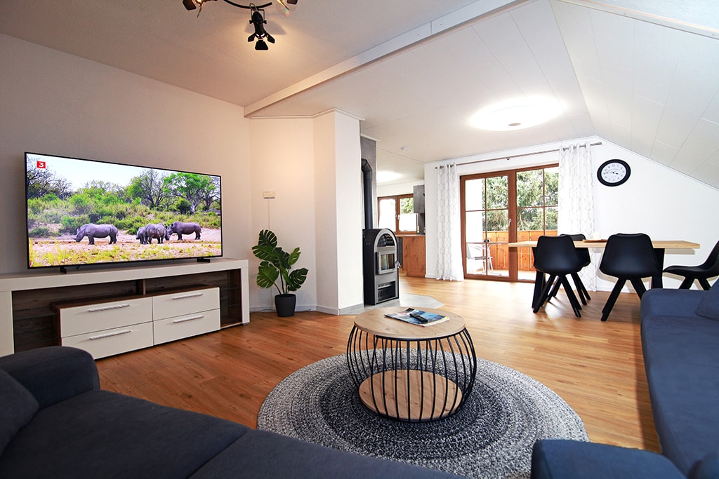 Sie wohnen gemütlich und authentisch auf 24qm in unserem "Bauernstüble". Im Wohnraum befindet sich eine Essecke, ein Kleiderschrank, Sofa und Satelliten-TV. Über eine Treppenleiter gelangen Sie in den Schlafbereich mit einer 140x200cm Matratze. Angrenzend zum Eingangsbereich befindet sich eine kleine aber vollwertig ausgestattete Küche. Ein modernes Badezimmer mit Fußbodenheizung und Tageslicht rundet die Wohnung ab. Eine Waschmaschine + Trockner kann für 4€ pro Waschladung mitbenutzt werden.