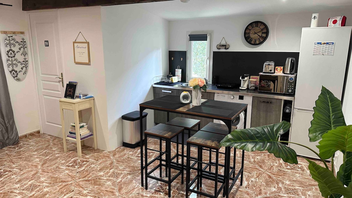 This unique, modern, and fully equipped house boasts its own distinct style. Located just a ten-minute walk from the metro, offering easy access to Paris (15 mins), Orly airport (20 mins), and Disneyland (30 mins). With 2 bedrooms, kitchen, living room, dining area, and 2 bathrooms, it's perfect for a comfortable stay. Additional amenities include AC, Wifi/Netflix, Coffee/Tea. For unforgettable moments, enjoy the outdoor jacuzzi spa, BBQ, and a beautiful terrace surrounded by greenery.