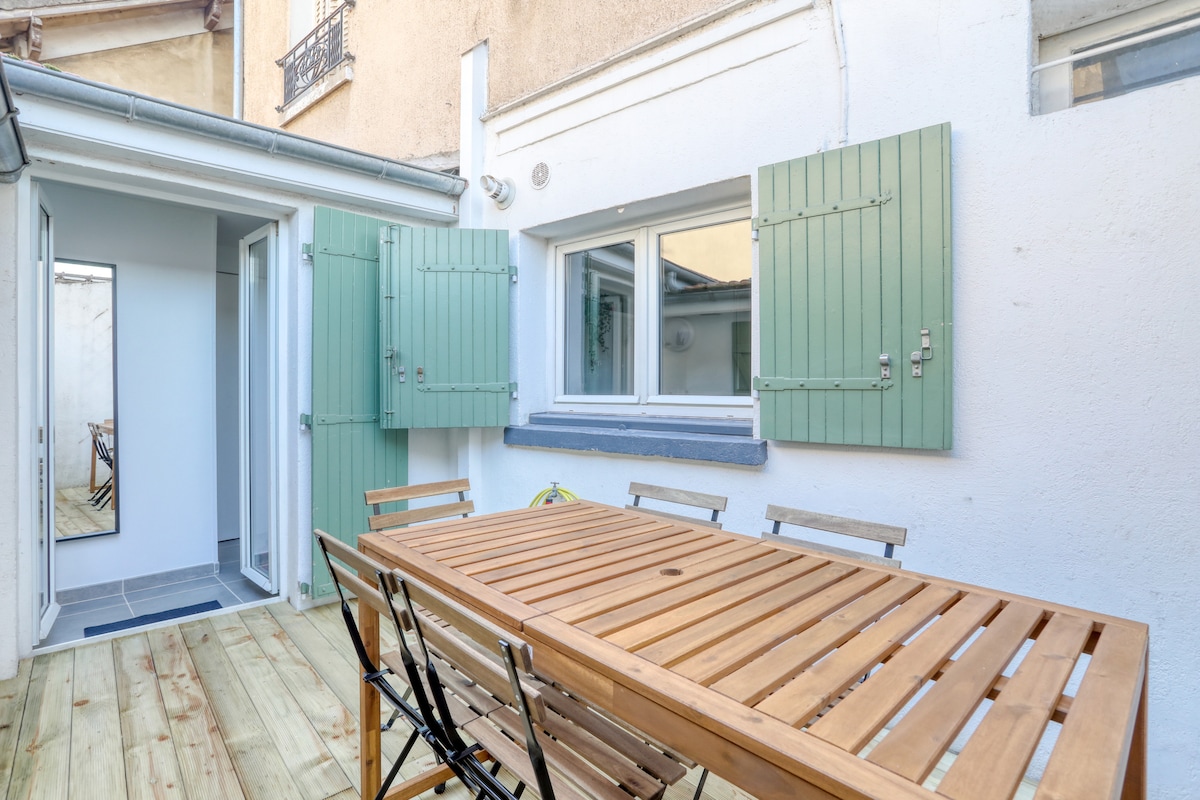 Bienvenue dans notre charmant appartement cosy en plein cœur de la ville (4e étage sans ascenseur). Profitez d'un quartier calme avec commerces de proximité (boulangerie, supérette, salon de thé, restaurants, laverie...). L'appartement comprend un salon avec cuisine ouverte entièrement équipée, deux chambres et une salle de bain élégante avec grande baignoire. Équipements inclus : Wi-Fi gratuit, parking privé, matériel pour bébé, et articles pour animaux. Transports à quelques minutes