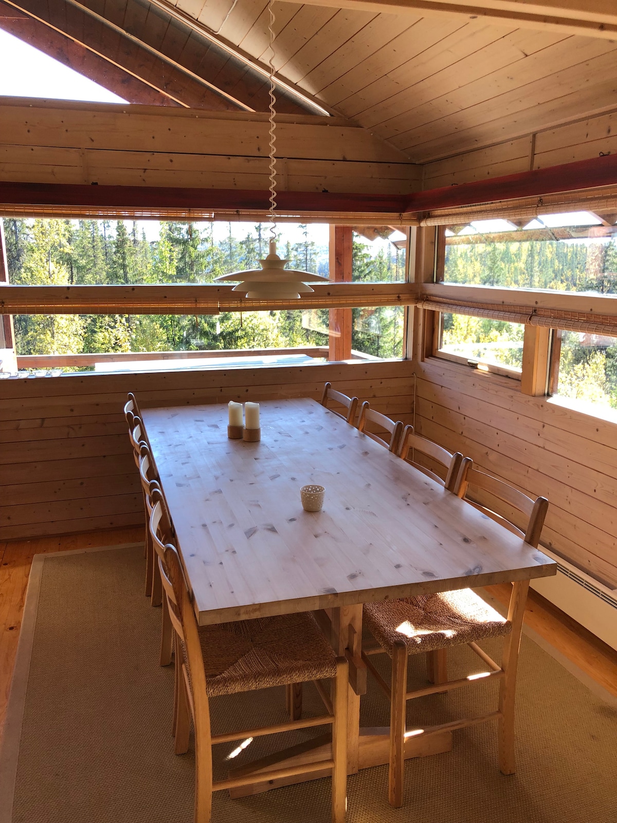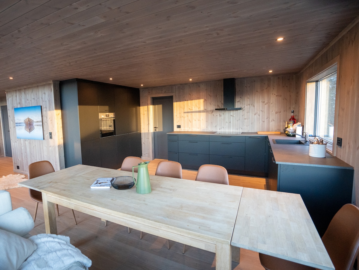 This is a modern, bright, and cozy cabin on one level, with 3 (4 bedrooms), 8 beds, and everything you need for a pleasant stay in the mountains. Two of the bedrooms have fold-down desks - perfect for workation. The modern fireplace will provide both comfort and warmth after a long day in the fresh mountain air. Electricity (ex. EV charging) included in the rent. The cabin is new, from 2022.