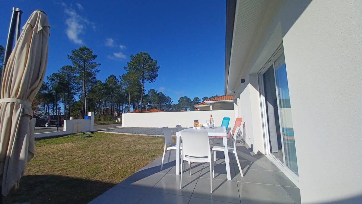 A brand new comfortable wooden beach house, 100m to the beach and a one minute walk to the restaurants, shops and bars. The beach house has been finished to a high specification with Air-con, high-speed fibre-optic WIFI, a big walk-in shower as well as indoor and outdoor decked areas - perfect for an evening bbq. Biscarrosse Plage offers plenty for all - surf, huge beaches, dedicated cycle paths and plenty more.