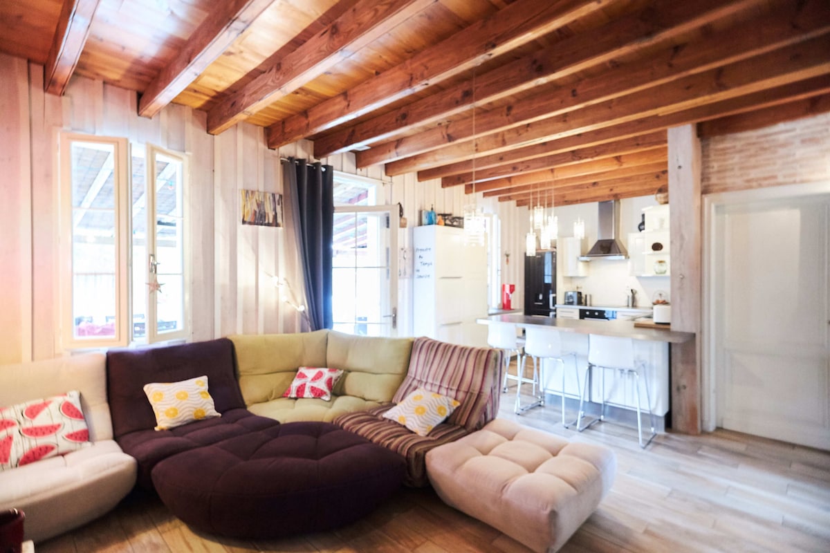 Kick back and relax in this calm, stylish space. This tastefully decorated 2 bedroomed guest house is hidden away in the forest. Making for a great peaceful getaway. The large terrace is perfect for relaxing and dinning. However, just 20mins from the beaches at either Contis, L'especier or Mimizan Plage, and 10mins from restaurants and commerces. You do need a car to get around. There is an option to use the outdoor spa (wood-burning hot tub and sauna) during your stay.
