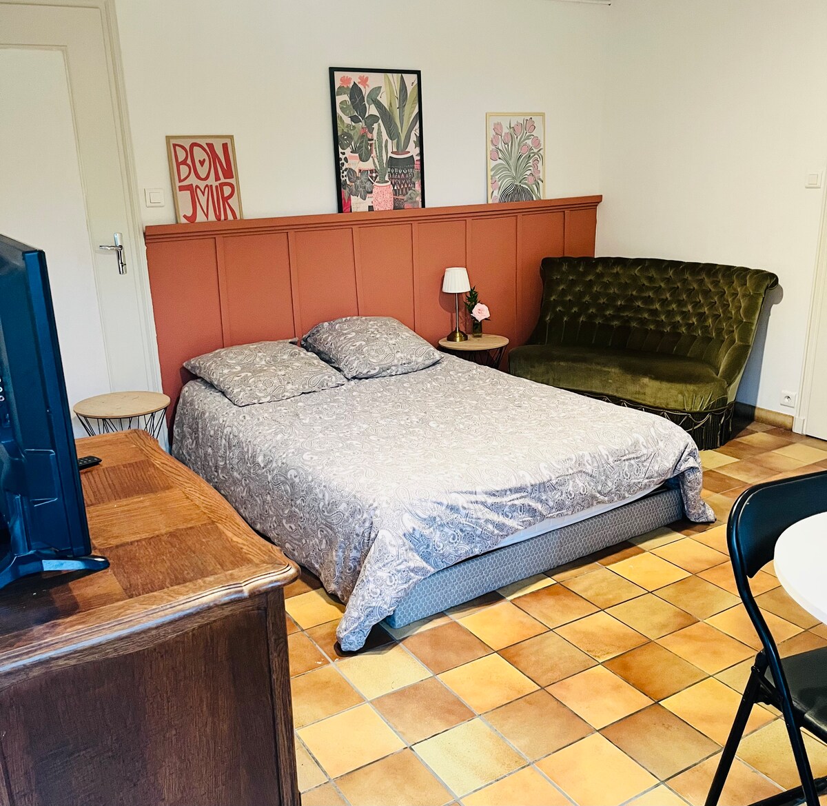 Studette de 15m2 (Hauteur: 2m15) indépendante, au rez de jardin de notre maison. Située entre ville et campagne, elle se compose d’une salle d’eau, d’un coin kitchenette et d’un lit en 140. Une petite table est à votre disposition à l’extérieur. Stationnement dans la cour de la maison ou dans la rue. Pas d’animaux ni de fêtes svp. Attention : nos pièces de vie sont situées juste au dessus de la studette. Ainsi, vous pouvez entendre du bruit durant votre séjour!