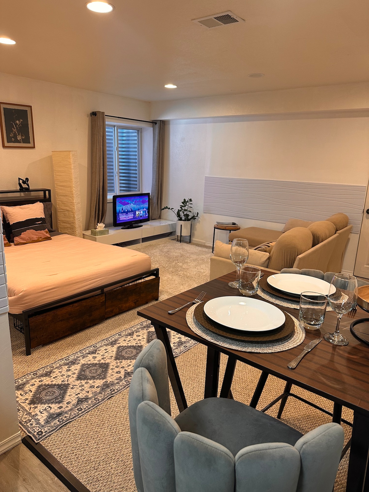 This space is created with luxury in mind. Come and enjoy this cozy Colorado Bungalow, perfect for a quick trip or an extended stay. This home was made to accommodate a variety of needs, interests and desires in a home-away-from-home. Each room have their own flare to tantalize your senses, pulling you in to engage with the space in their unique way. The location is close to the airport and major highways for convenient traveling with near-by amenities such as golf and 60min away from mountains.