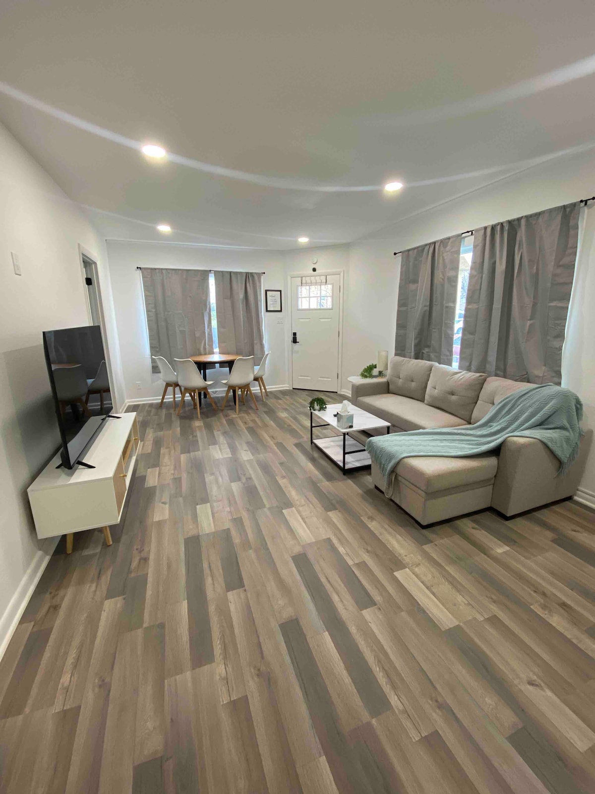 Modern 2-bedroom and 2-bath home just 10 minutes from Denver Airport and 5 minutes from Gaylord Resort! Enjoy an open living space, a fully equipped kitchen, fast WiFi, a smart TV, in-unit laundry, and a private garage. Relax in a quiet, safe neighborhood with easy access to downtown Denver, parks, and dining options. Perfect for families, business trips, or a fun getaway, book your comfortable stay in Denver today! Relax or unwind in the great room after a day of exploring the Mile High City.