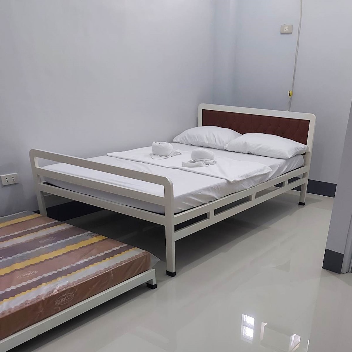 Matityahu Home is a 200-square-meter open area with a semi-tiled 3-4ft swimming pool, 1 bedrooms 1 queen size bed can add 1 extra double size bed. 1 loft type twin size bed extra 1 twin size bed in sala and 1 hammock beside the loft bed. ensuite bathroom with powder area, high quality bed linens and towels, a smart TV with netflix, spacious living room with two reclining lazy floor sofa, and a center island kitchen with pool view.