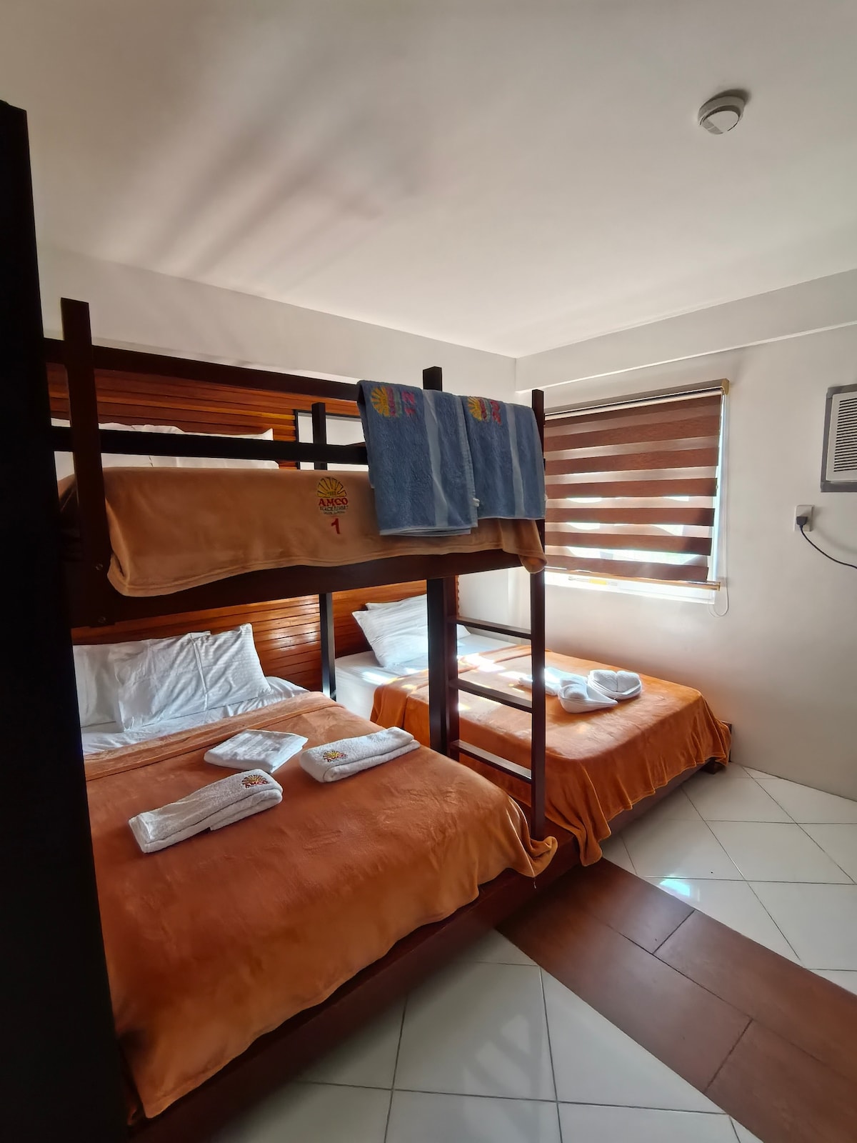 Our Ac Room has one queensized bed plus mezzanine w/ extra mattress. You can sit and Relax at the room' s veranda while overlooking at the ocean view. We have Kiddie / Adult swimming pool. We have common kitchen. You can bring your own food. Free use of gas stove along with the Basic kitchenwares & utensils. you can dine at our Open cottages for FREE while enjoying the view of the beach.