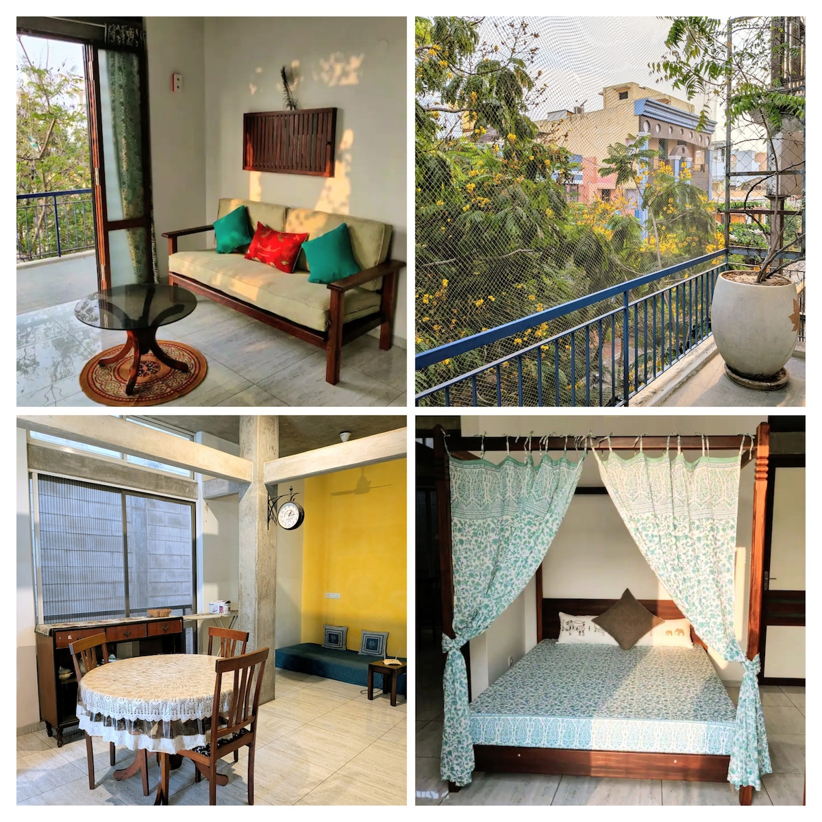 Éternité 2 is a warm and quiet home designed to help you unwind and enjoy quality time with family and friends. With a sea facing balcony for your morning coffees, and large transparent windows to enjoy the evening sea-breeze, our home is your perfect getaway to experience Pondy away from the hustle bustle of big cities. Our apartment is located a few minutes from the famous Ashram, the Promenade beach, and the White town, where you can indulge in French cuisine and architecture.