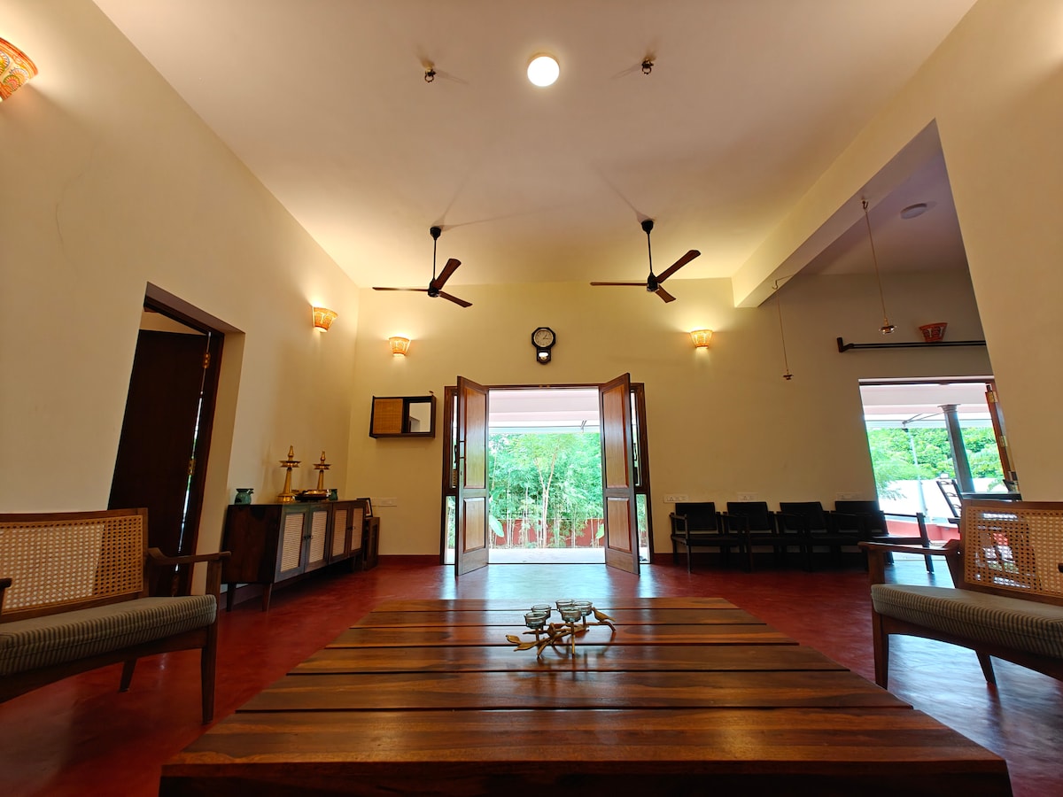 Insta: vagabond.pondicherry A serene property surrounded by lush greenery; well-lit and ventilated rooms; common spaces. Enjoy the breeze and amazing view from the vast sit out and terrace spaces. Fast wifi facilitating work from home, book collection, board games and other engaging amenities to have a good time. Auroville beach and Serenity beach at a walkable distance (500m). Both beaches are ideal getaways for surfing, kayaking and fishing. Come, stay and you'd love to extend your stay.