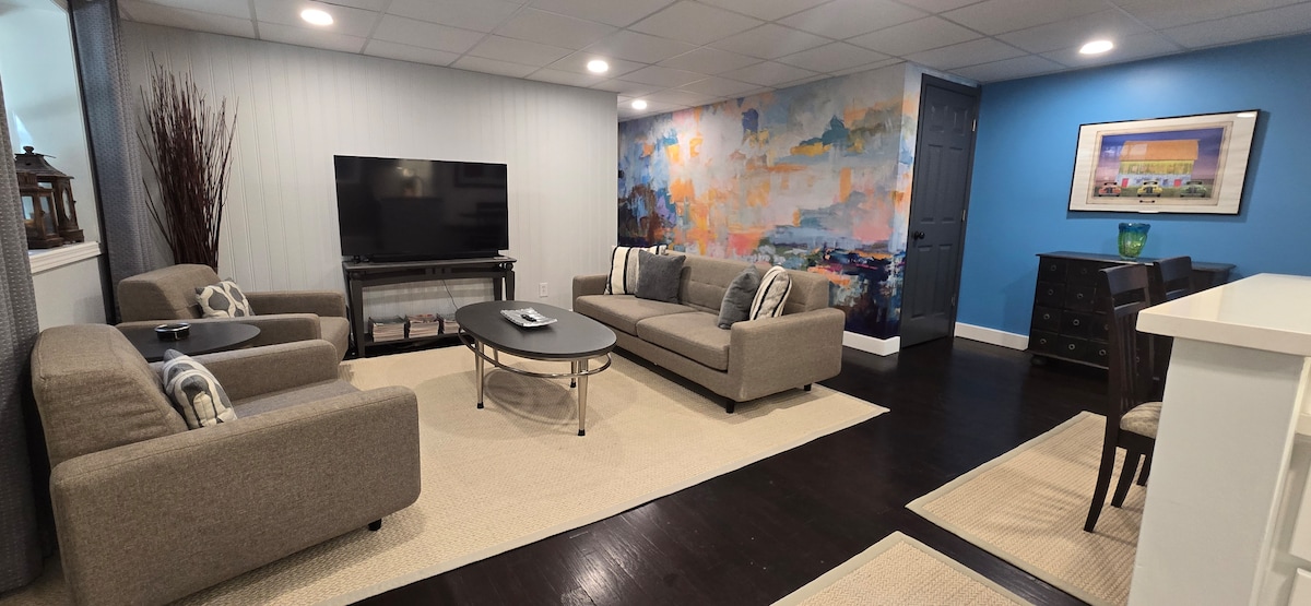 A beautifully renovated and spacious 1 bed/1 bath private basement apartment with a private, separate entrance! The apartment includes stainless steel kitchen appliances, wifi, a dedicated workspace, two flat screen Fire TVs, washer & dryer, and an electric fireplace. Located in a quiet residential neighborhood, but only 5 miles away from the historic Marietta Square and 5 miles away from the Braves Stadium. Enjoy the peace and quiet while still being close to the excitement of metro Atlanta!