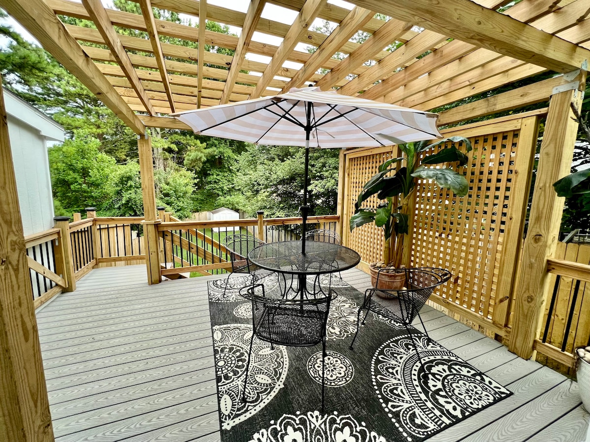 Your private, renovated Sandy Springs retreat—perfect for couples, families, remote work, and travel nurses. Safe, quiet, design-forward, with quick access to the greater Atlanta metro. ☑ Private entrance ☑ King Nectar bed ☑ Queen trifold floor mattress ☑ Queen sofa bed (great for kids) ☑ 328 Mbps WiFi + desk ☑ Full kitchen ☑ Washer + dryer ☑ Pack ’n play + toys ☑ EV charger ☑ Modern, calming design “Pictures don’t do it justice!” 7 mins → DT Dunwoody 15 mins → Alpharetta 25 mins → DT Atlanta