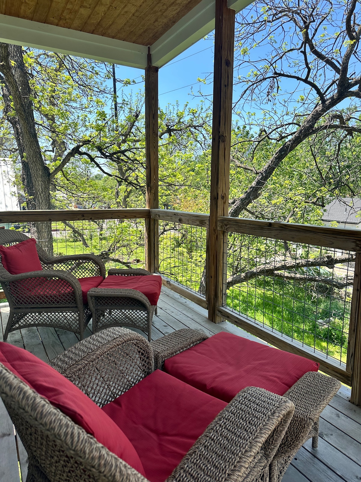 Enjoy urban charm in this bright, airy haven boasting 10+foot ceilings and bamboo throughout. Unwind on the covered porch, level with the tree canopy and facing Austin's ever evolving downtown cityscape - or work remotely in the living area with high-speed WiFi. Explore the best of the city center from this prime location near Rainey and East 6th, with the lakeside trail just steps away. Perfect for a solo or couple's weekend escape to the beautiful capital city!