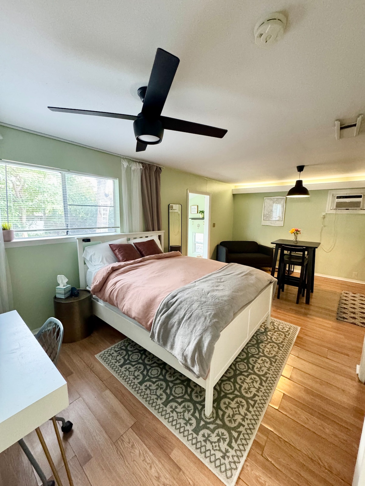 Central 400sqft peaceful art-filled private studio w/ Queen bed + private entrance in quaint neighborhood. Walk to North Loop eateries and coffee shops (Epoch Coffee, Double Trouble, Tigress Bar, Homeslice Pizza). All new appliances, and beautiful spa like bathroom with walk-in shower. Full kitchen setup w/ large fridge. Safe street parking. Smoke free, no pets. Quiet hours from 10pm-8am (unit is attached to main house and hosts live on-site).