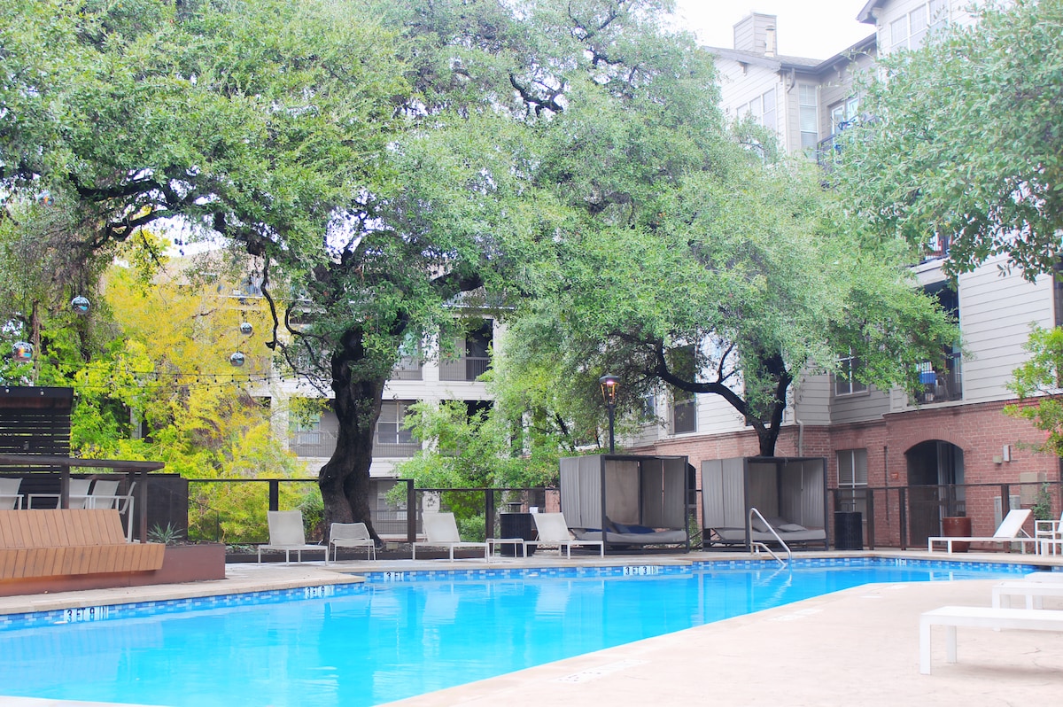 DOWNTOWN AUSTIN LUXURY CONDO FLOOR 18 • STUDIO • 447 ft² / 41.5 m² ✦ Private Balcony with skyline-view RESORT-STYLE AMENITIES ✦ Luggage Storage at Front Desk ✦ Elevators, Accessible Entry, Bike Storage ✦ Rooftop Pool + Cabanas, Club Room on 33rd F ✦ Fitness Center, Yoga Lounge, Private Pelotons ✦ Workspace, Terrace, Grab-n-Go Coffee Lounge RIGHT BY RAINEY STREET & COLORADO RIVER ✦ Convention Center – 0.5 mi (0.8 km) ✦ South Congress Ave – 1.3 mi (2 km) ✦ Lady Bird Lake – 1.4 mi (2.2 km)