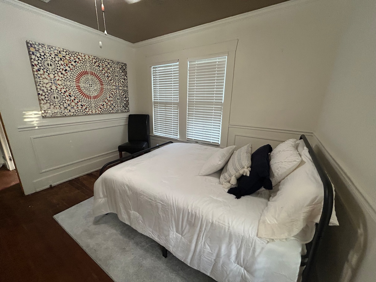 This unique and historic arts & crafts home has been beautifully restored and is located on a .407 acre corner lot which allows for plenty of outdoor activities and fun for the whole family. This home has a cozy feel with a fully functioning kitchen, including all cookware, spices, pantry staples and appliances such as a microwave, toaster oven and coffee pot. There are two full sized bedrooms with queen sized beds and the option of two air mattresses for extra people.