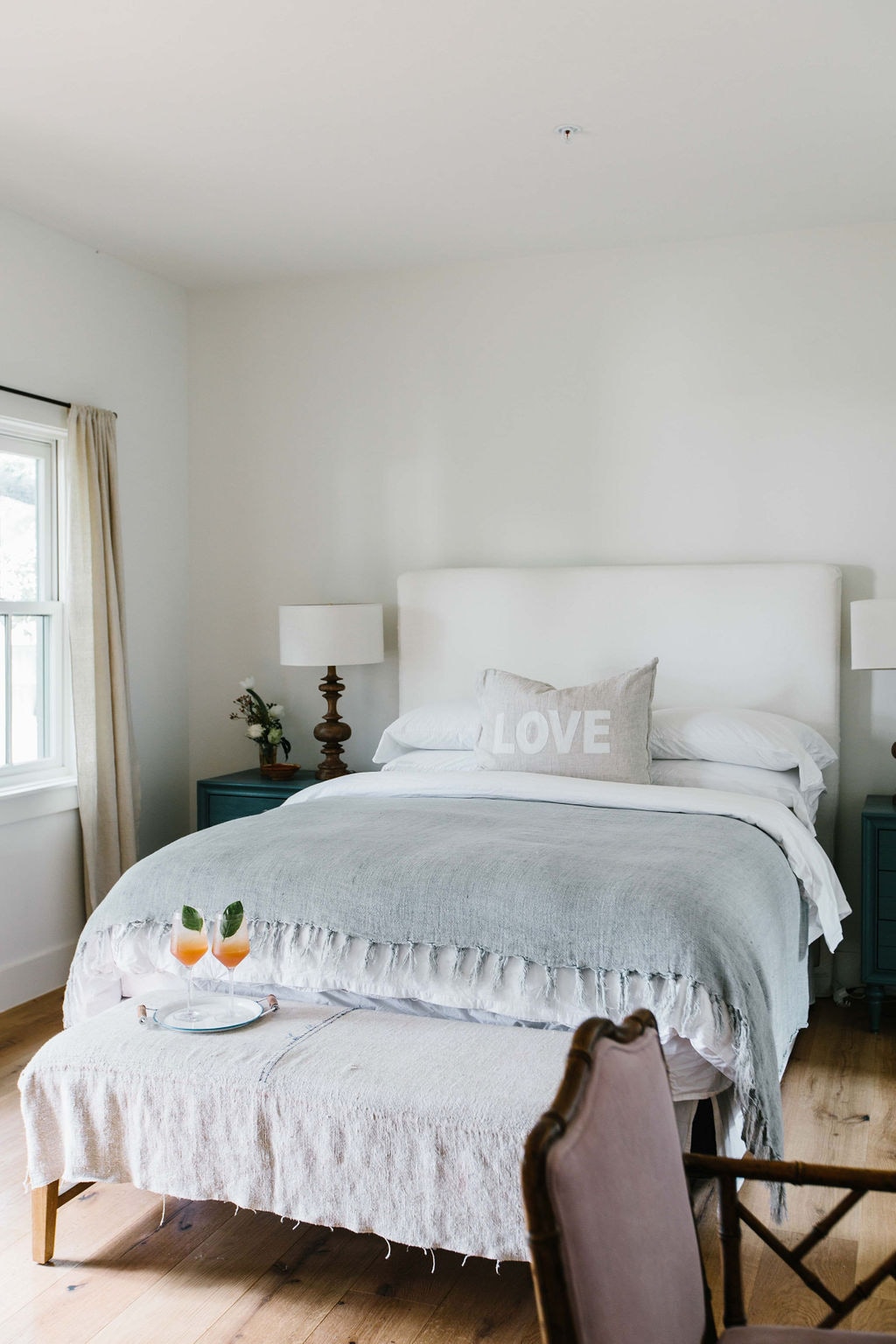 This two bedroom cottage with front porch. Sleep comfortably in a queen bed under organic cotton sheets and a Pom Pom at Home linen fringed throw. Across from the bed is a cozy living area with a linen sofa and vintage desk. In the adjoining bedroom are two twin beds (note: entry to this room has a door). The bathroom has a shower/tub combination, organic cotton towels and local bath products. Amenities include coffee maker, mini-fridge, mirror, hair dryer, steamer, WiFi, 14" TV with Sling.