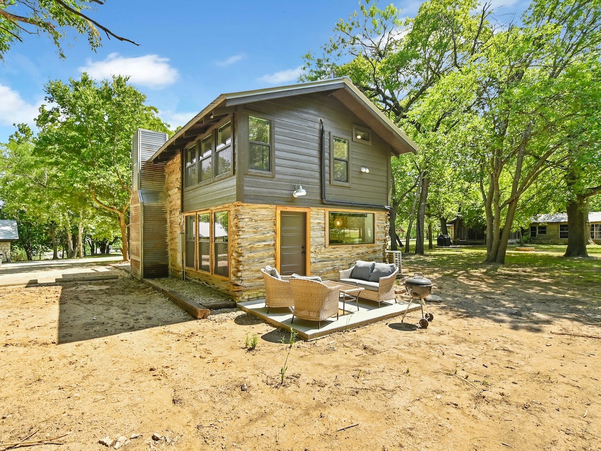"The Longhorn" cabin offers 1 bedroom with a queen size bed, a loft with 2 twin beds (not full height ceiling), a full bathroom, fully equipped kitchen, dedicated parking space and your own private deck and fenced yard! If you're looking to be near everything Austin has to offer, but feel like you are hidden away in the beautiful Hill Country...LOOK NO FURTHER! You will be nestled away on our 3 acre gated property with lots of nature, shared pool, covered patio and fire pit ready to enjoy.
