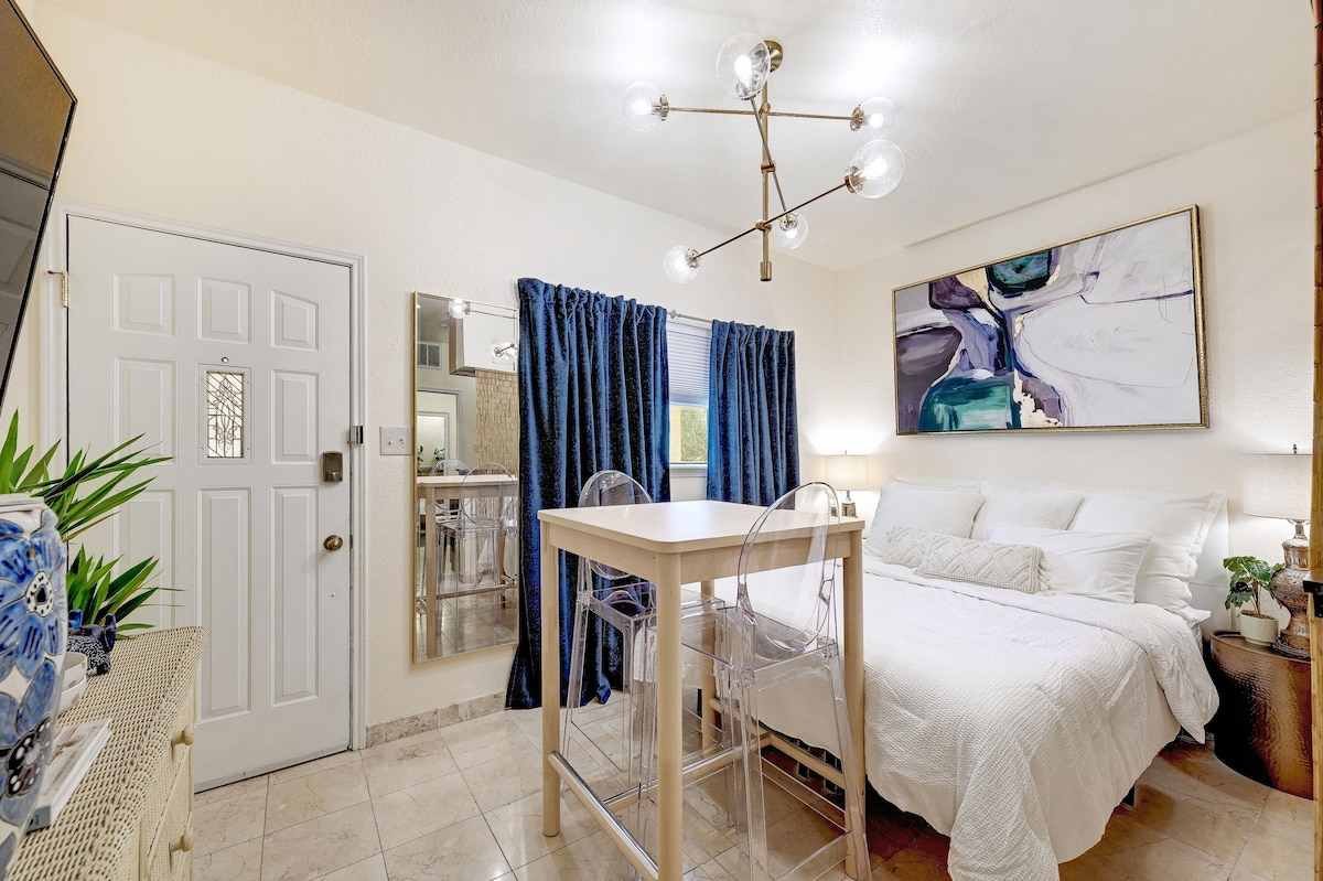 Our Marfa, TX inspired condo is the perfect retreat after a day exploring this incredible city! Located near restaurants, galleries, specialty stores and generous tree-lined streets. Start your day with coffee and pastries from the famous Swedish Hill Bakery and end with an intimate dinner at Clark’s Oyster Bar - just steps away. Enjoy our bright, thoughtfully furnished condo w/ French doors opening to your own south facing, sunny patio equipped with an outdoor living/dining/working space!