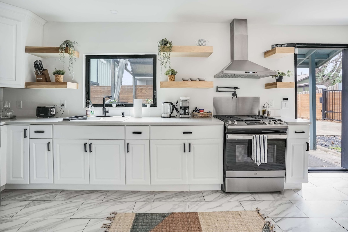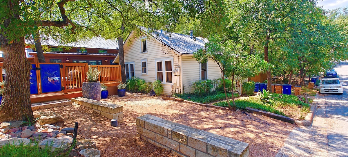 Top 1% _WORLD, Gr8 for Moody Center(1.1mi). High-Frequency Bus, IT'S CLOSER THAN THE UBER DROP-OFF. Easy Self Check-In with a key code. Privacy & 5STAR AMENITIES. Cable/Netflix, Dolby Atmos Sound, Bidet, Fireplaces, endless hot water, Wifi & Wired. Free parking, less than $10 uber to downtown. Eco-Friendly, Healthy stay, with Dyson, Vitamix, Frame TV, and Kitchenaid. Enjoy the historic wood floor under your bare feet in a charming Solar-Powered 1930s bungalow under a 100yr old Pecan Tree.