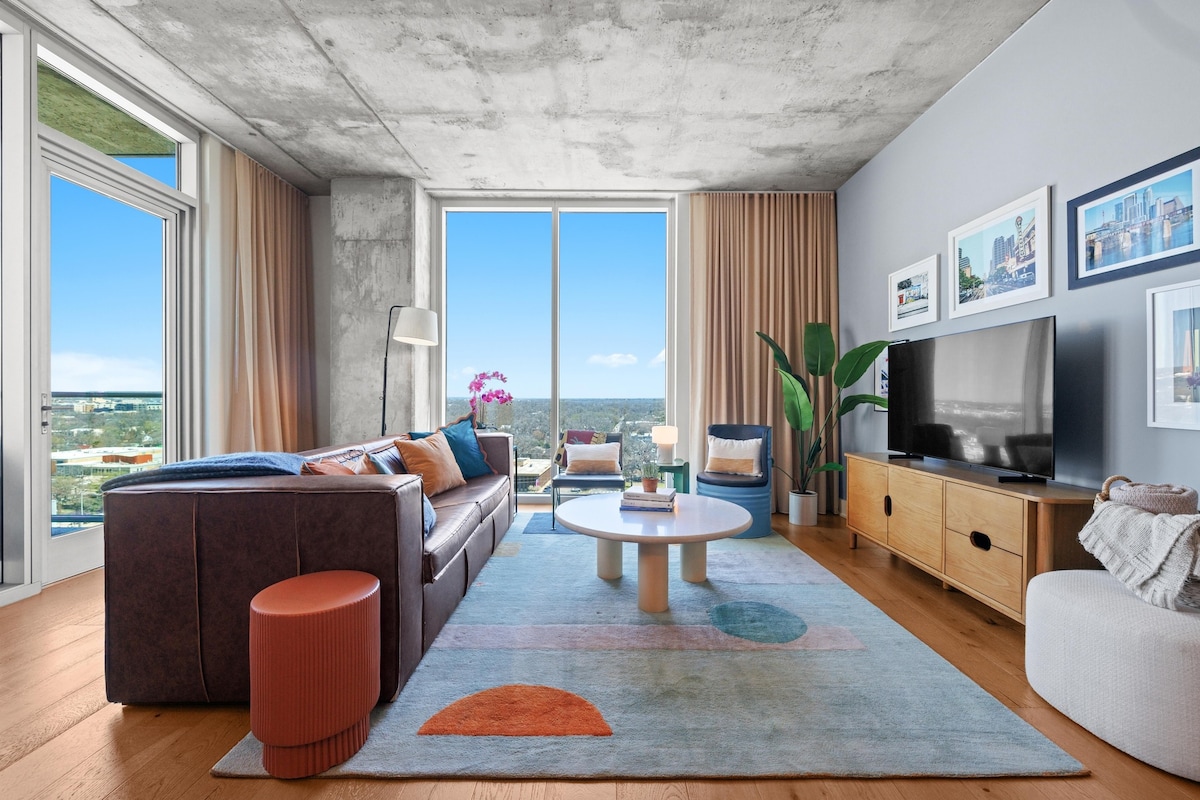 - Luxury Resort-style rooftop pool with Pool-side Cabanas (33rd floor) - Incredible views of the Austin skyline - Rooftop Outdoor Lounge & Gas Fire Pits (33rd floor) - Terrace lounge, rooftop club room, and co-working space (33rd floor) - Fitness center, yoga lounge, and private Peloton studios (10th floor) - Coffee bar/co-working space (1st floor) - Lobby lounge (1st floor) - EV charging & bike storage - Private balcony and an additional sleeper sofa in your condo