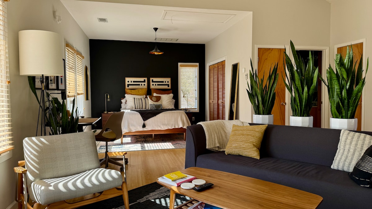 Beautifully decorated guesthouse in the heart of East Austin that feels like a real home. Be close to downtown and East Austin activities in a quiet and comfortable space. Explore nearby bars, restaurants, coffee shops, breweries, retail stores, art studios, and nature trails. * 1 bedroom, 1 bathroom * Full kitchen with cooking supplies * Vintage mid-century furniture * Full size washer/dryer * Private patio * Shared courtyard * Treehouse cabin with deck * Pet-friendly