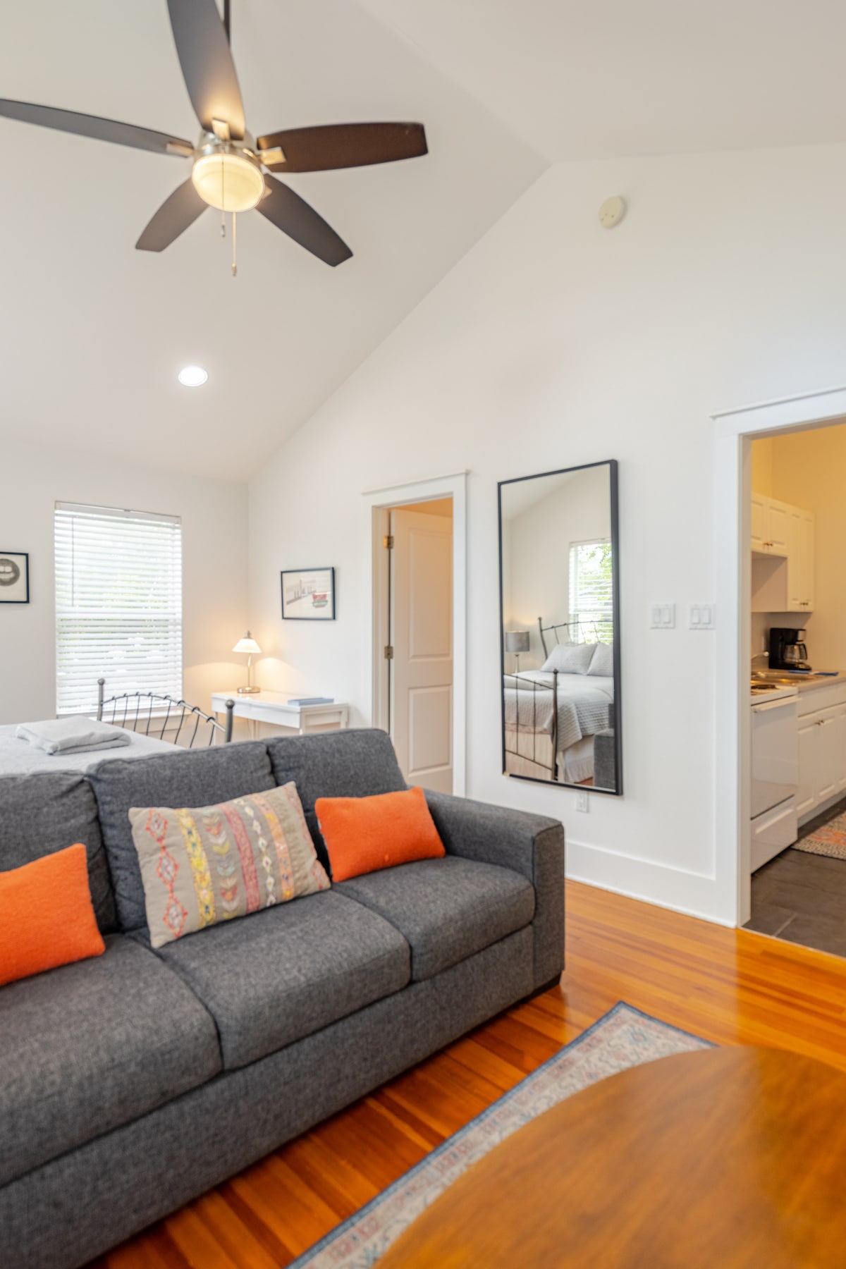 From start to finish our space is a delight! Inside a treasure of bespoke woodwork and thoughtful design creates a stunning 'traditional meets modern' space you will enjoy for its beauty and flow. It offers handpainted shiplap ceilings, real antique cedar/stone walls, custom cabinetry, dimmable lights, full kitchen, easy access outlets and a private entrance from the side courtyard, a lovely place to sit and enjoy our incredible edible yard with berries, figs, fruit, herbs, &veggies growing.