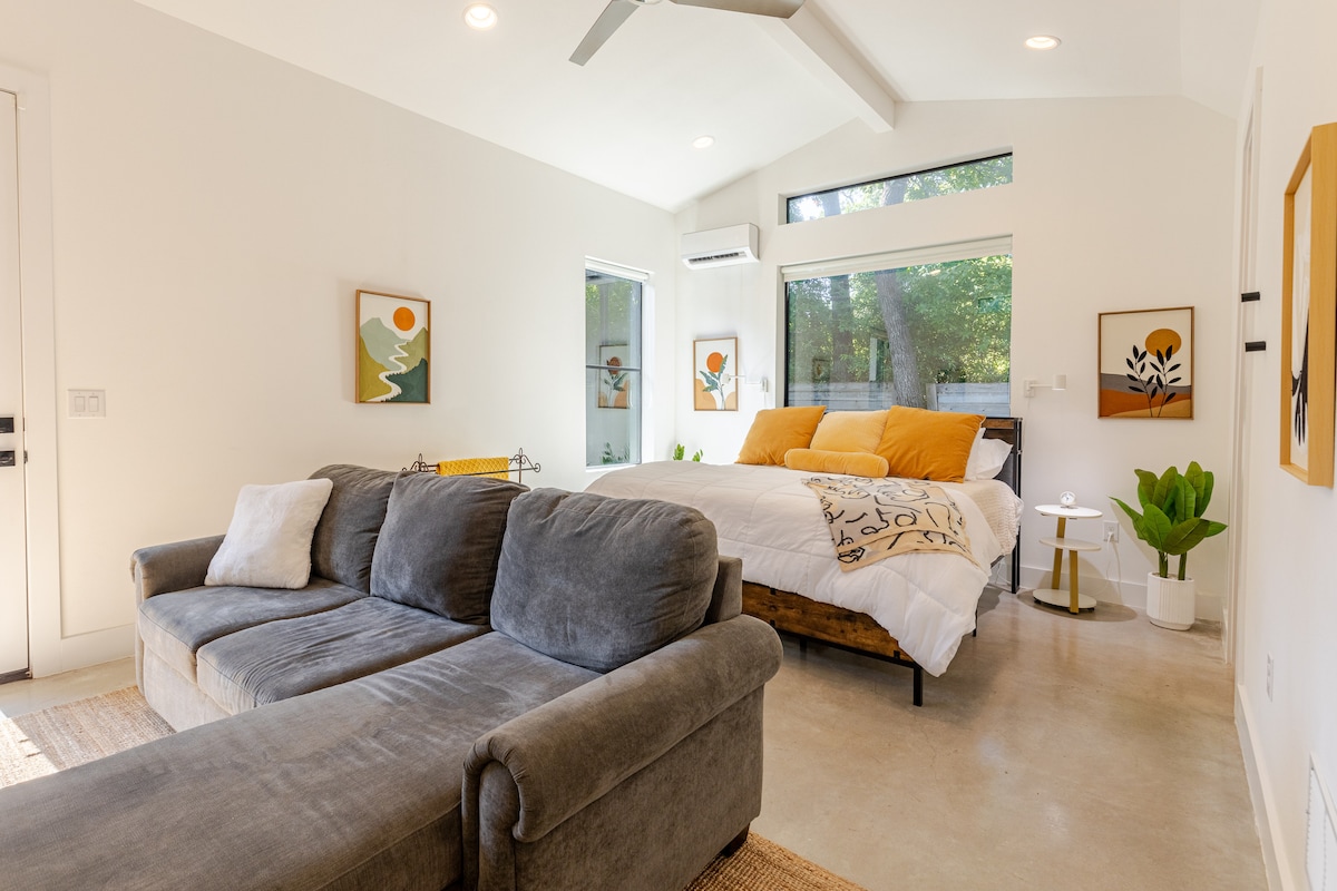 This luxury guesthouse was built to feature the beautiful, old growth pecan trees located on the property. The space is like your own private Boutique Hotel with great amenities, and an unbeatable location in a pocket neighborhood near downtown and the lakeside trail. At any given time, you can enjoy views of the local wildlife and native plants. It's a half mile walk from many famous Austin restaurants, coffee shops, breweries and nightlife.