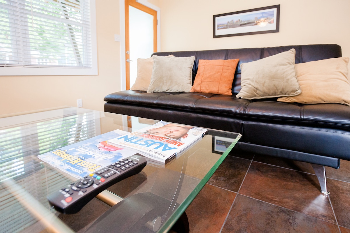 This suite was professionally designed to lift your mood and help you feel at home from the moment you arrive. Every detail was carefully chosen to create a space that’s both easy to enjoy and relaxing. Located with quick access to downtown and the highway(183). It’s a launch point for Austin adventures or just unwinding.