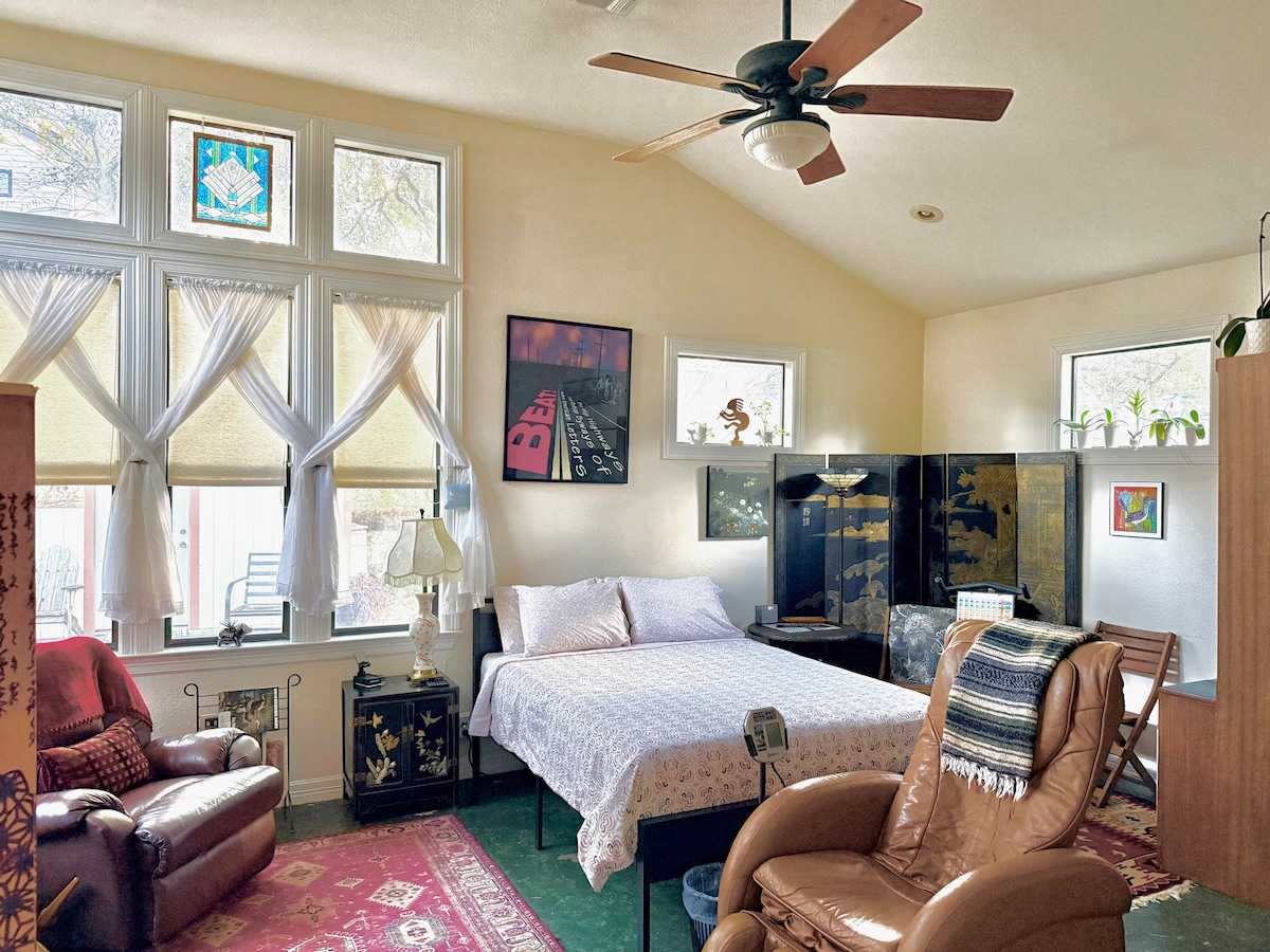 This detached guest suite loft with private entrance is just steps from both South Congress and S. 1st Street, home to some of the most iconic restaurants, shopping and entertainment in Austin! Centrally located with an included parking space and separate private entrance, this studio offers walkability, style and comfort in one of the most ideal locations in Austin! The studio includes a queen bed with great mattress, new SmartTV, kitchenette, sleeper sofa with full mattress and more!