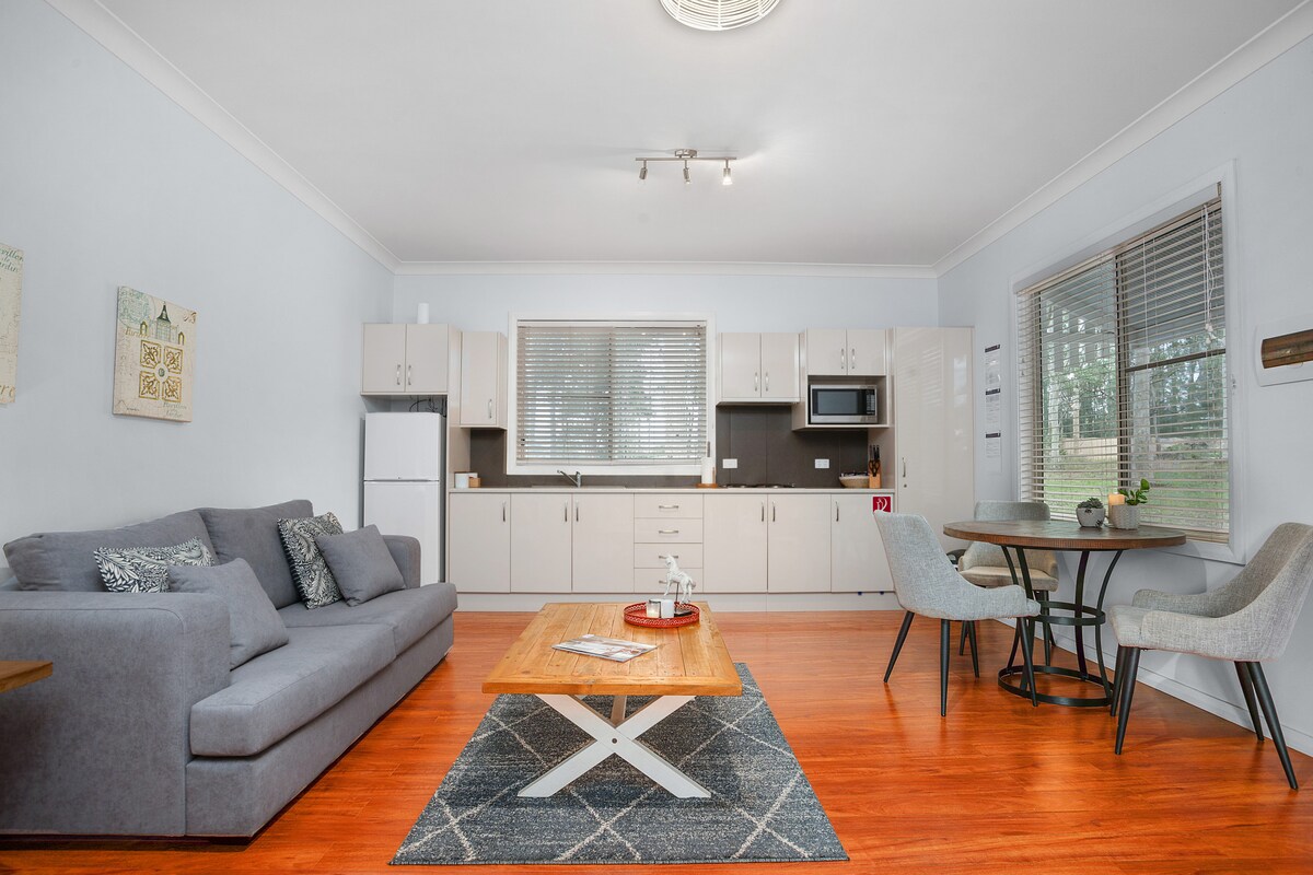 Enjoy this beautiful light filled, open plan peaceful space with raked ceilings This stylish, self-contained one-bedroom apartment is set entirely on one level, with plenty of thoughtful touches to make you feel right at home the moment you arrive Newly added rear courtyard in December 2025 with BBQ Full kitchen, tea, coffee and basic pantry provisions supplied Washer/dryer Unlimited NBN access Keyless no step entry, accessible throughout with walk in/roll in shower Off-street parking