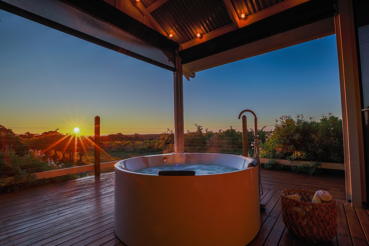 UNIQUE ROMANTIC stay in Sellicks Hill South Australia . Dark starry nights. Festoons. Stop and smell the Roses. Take a photo in front of the iconic Elephant Door. Propose, Enjoy date night or elope at Love at Sellicks. Soak in endless views from the bath on the massive deck. No embarrassing noises or smells from the Huge OUTSIDE bathroom with rain shower Wheelchair friendly. Take memorable photos in the Mclaren Vale Region vineyard, try the grapes in season, chocolate & wine as a gift