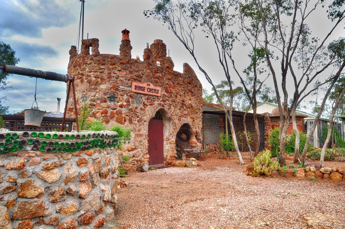 Stay in the iconic Ridge Castle, one of the towns most photographed mining camps. You will have access to the entire Castle, sleeping up to 7 in comfy beds with luxe organic cotton linen. Boasting a well equipped kitchen including large BBQ area and fire pit (byo wood). It is located on a mining field, 2kms from town. Enjoy expansive views from a private turret. Remember this is a genuine mining camp, off grid so don't expect five star, it is hot in summer and cold in winter! (no heating or a/c)