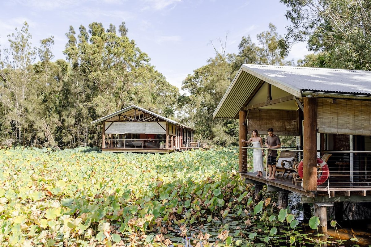 Discover a slice of paradise in the heart of the Hunter Valley with our enchanting boathouse accommodation, poised gracefully over a serene lotus pond. This idyllic retreat is tailor-made for couples seeking a romantic escape. The boathouse seamlessly blends rustic charm with modern comforts, offering an intimate haven for two. Take it easy at this unique and tranquil getaway. For those looking to explore, you're just moments away from world-class wineries, cellar doors and restaurants.