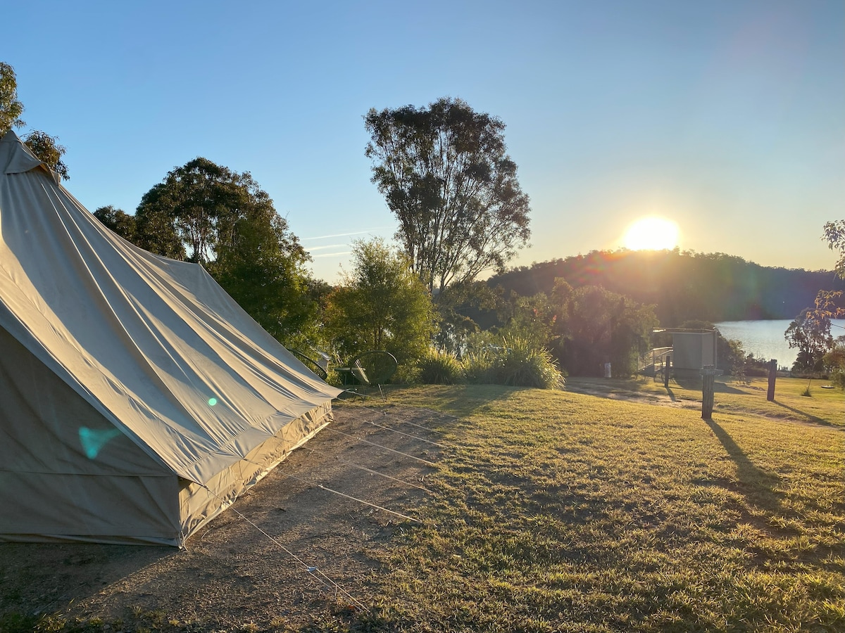 Escape from the hustle and bustle of day to day life and cozy up in one of our lakeside Bell Tents. Boasting waterfront views over Cooby Dam, and set on 50 acres of native bushland, our Bell Tents give you the perfect opportunity to disconnect from the outside world and reconnect with your loved ones. Cozy up around our Bunya View Bonfire, walk along the lake, explore the bushwalking tracks, take in the fresh air, and admire the stunning sunsets over Cooby Dam.
