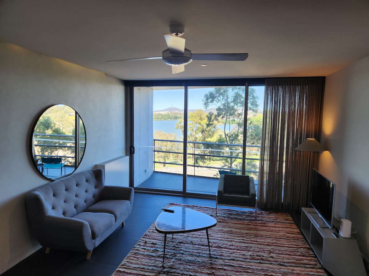 全新1卧室,堪培拉中心,湖景。