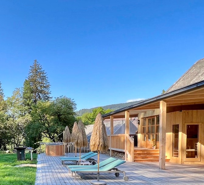 Luxurious newly renovated barn conversion, few min walk (or 1 bus stop) from the main lifts. 206sq.m on 3 floors, with 4 generous bedrooms, 4 ensuite bathrooms, private Spa (Sauna/Steam and Massage Room). The upper floor has a stunning Living Room /open Loft with wood fireplace, TV area, dining area and separate kitchen. Private ski room with boots warmer, Laundry corner, and a shared outside lounge with barbecue. Daily Breakfast, Pizza Nights or Gourmet Nights can be booked anytime.